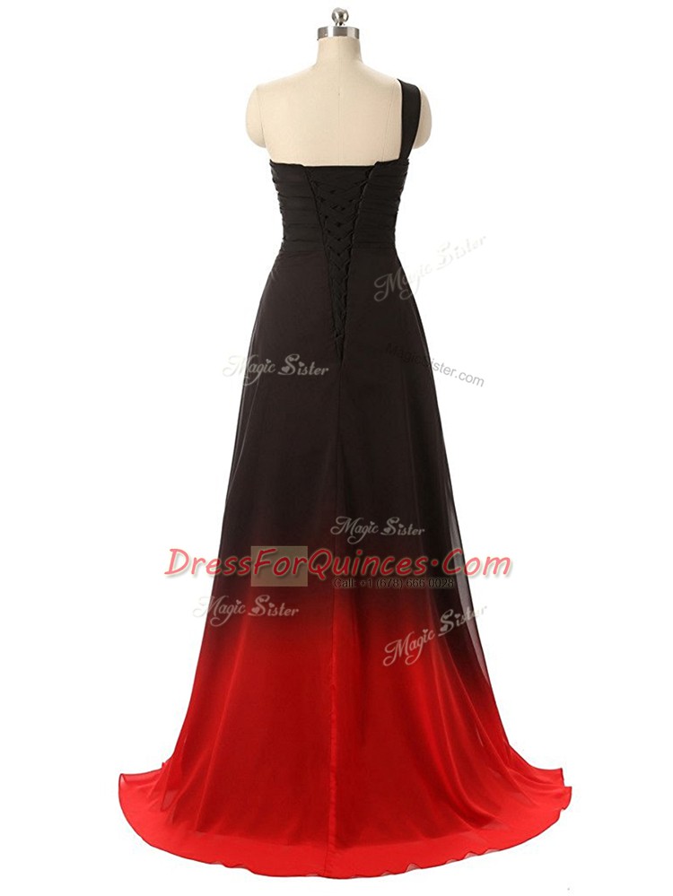 Low Price Multi-color Empire Fading Color One Shoulder Sleeveless Beading and Ruching Lace Up Prom Party Dress Brush Train