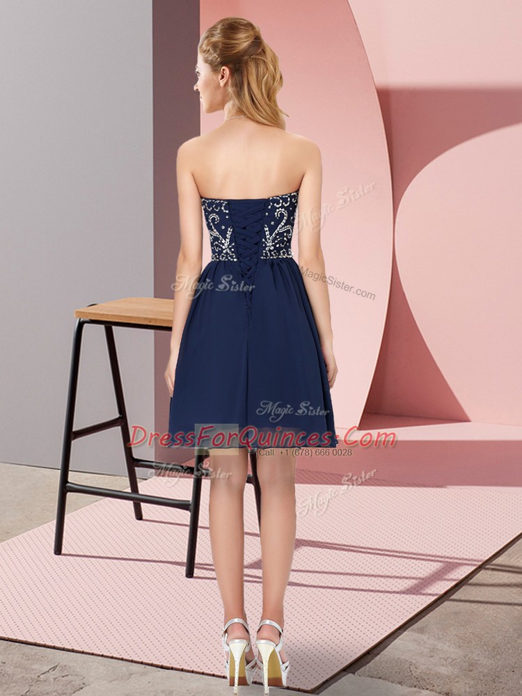 Mini Length Royal Blue Prom Dresses Chiffon Sleeveless Beading