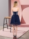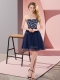 Navy Blue Chiffon Lace Up Prom Party Dress Sleeveless Mini Length Beading