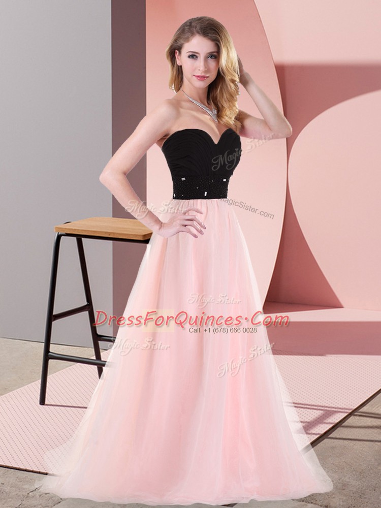 Pink And Black Sweetheart Neckline Belt Prom Dresses Sleeveless Lace Up