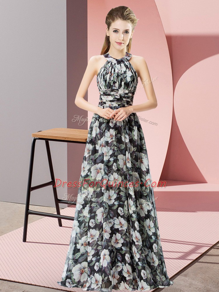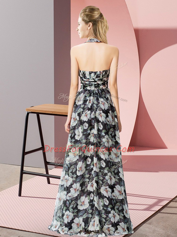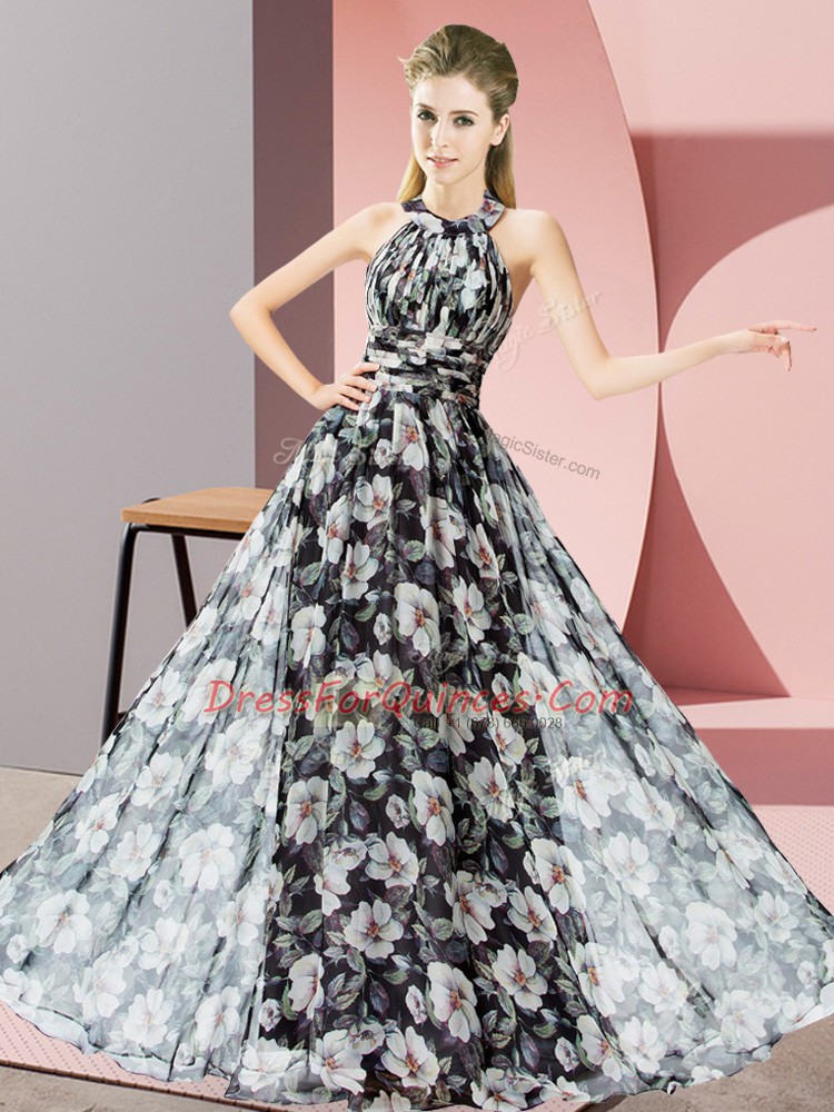 Popular Halter Top Sleeveless Zipper Prom Dress Black Chiffon