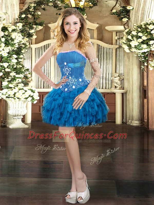 Pretty Mini Length Ball Gowns Sleeveless Blue Prom Party Dress Lace Up