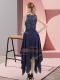 Pretty Navy Blue High-neck Neckline Beading and Sequins Dress for Prom Sleeveless Zipper