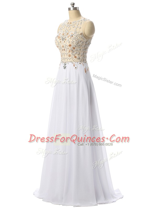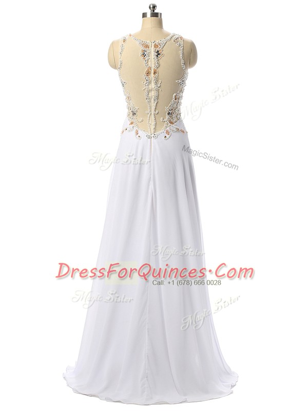 Pretty White Zipper Scoop Beading and Lace and Appliques Chiffon Sleeveless