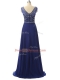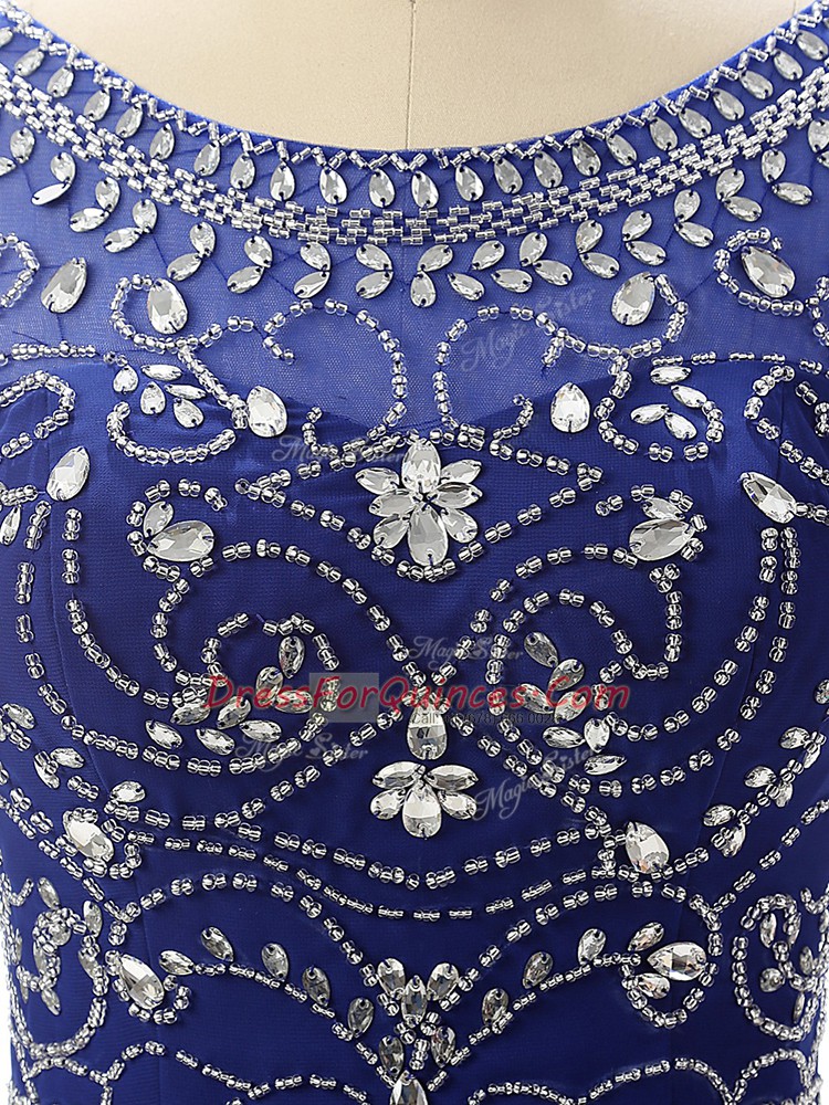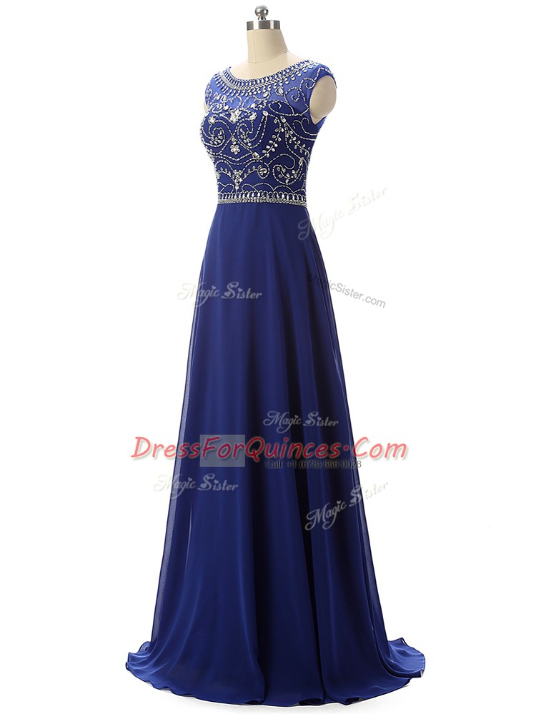 Royal Blue Sleeveless Floor Length Beading Zipper Prom Gown