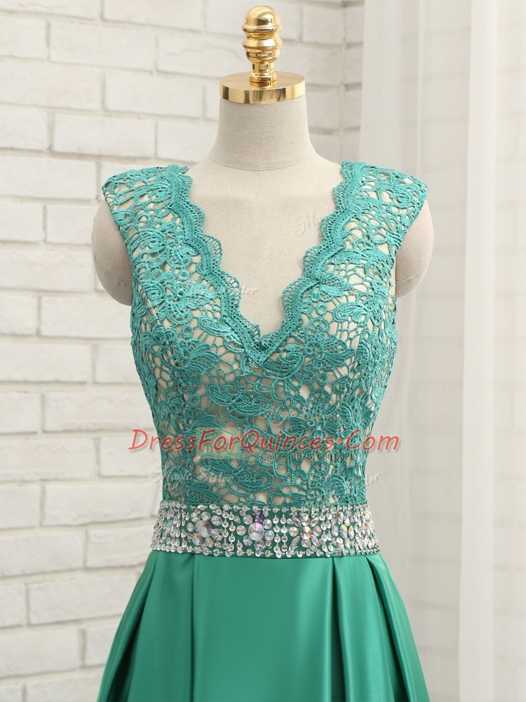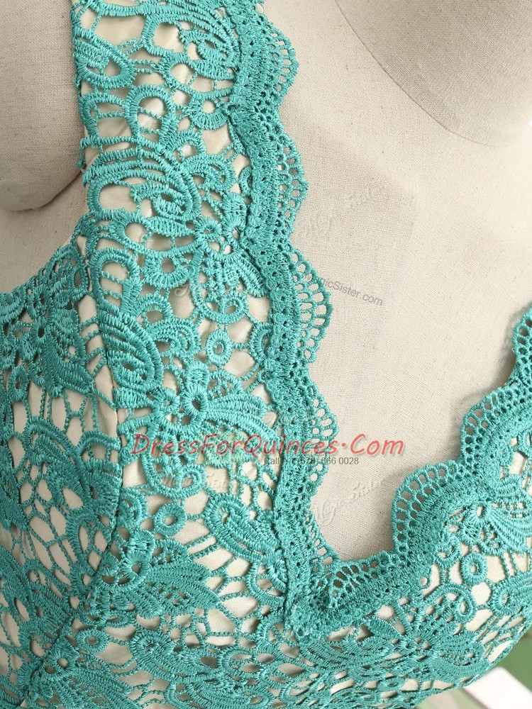 Sleeveless Backless Floor Length Lace and Appliques Homecoming Dress