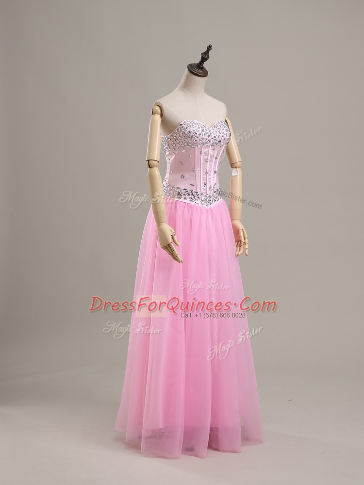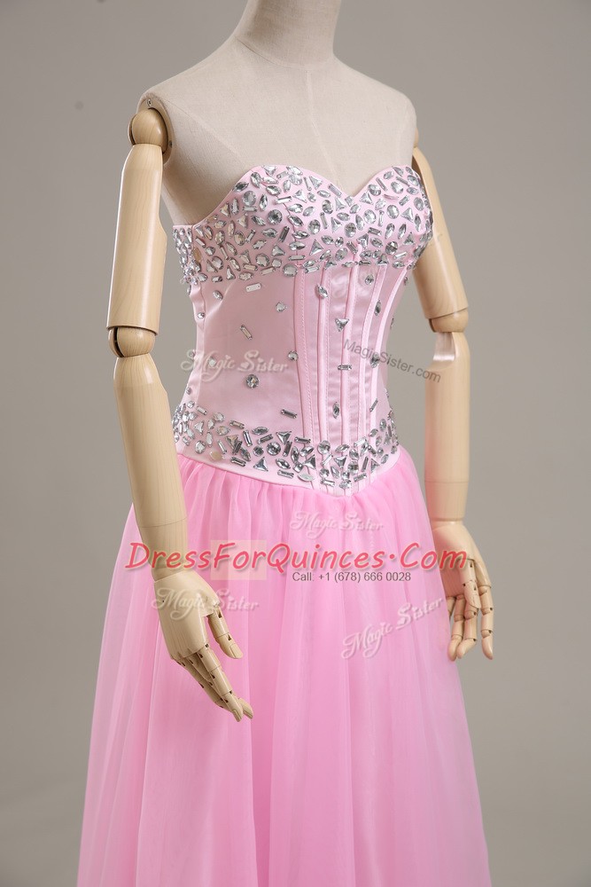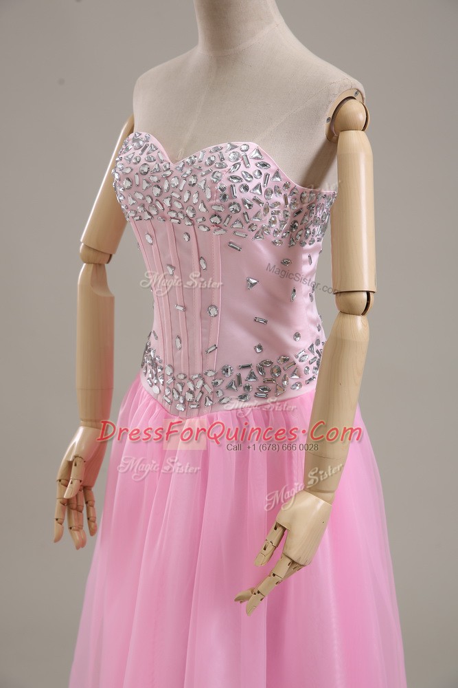 Sleeveless Lace Up Beading Prom Dress