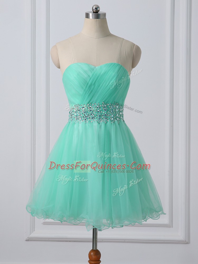 Sleeveless Lace Up Mini Length Beading and Ruching Prom Dresses