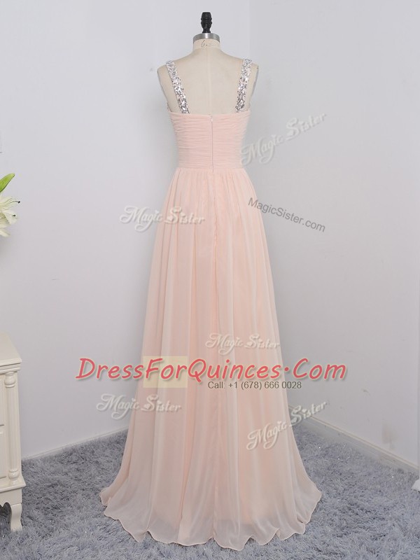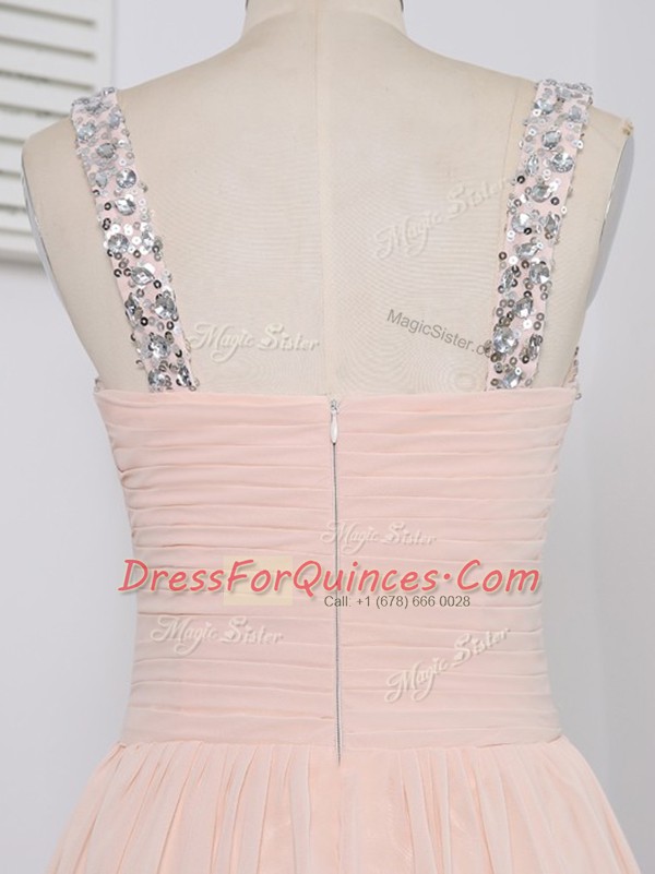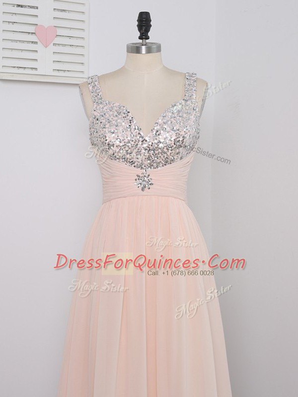 Spectacular Chiffon Straps Sleeveless Zipper Sequins Prom Dresses in Peach