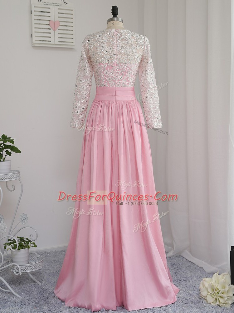 Spectacular Long Sleeves Beading Zipper Prom Gown