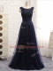 Suitable Tulle Scoop Sleeveless Zipper Beading Prom Gown in Navy Blue