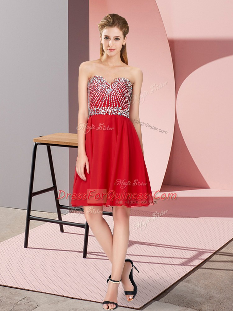 Sumptuous Sleeveless Knee Length Beading Lace Up Evening Dress with Red