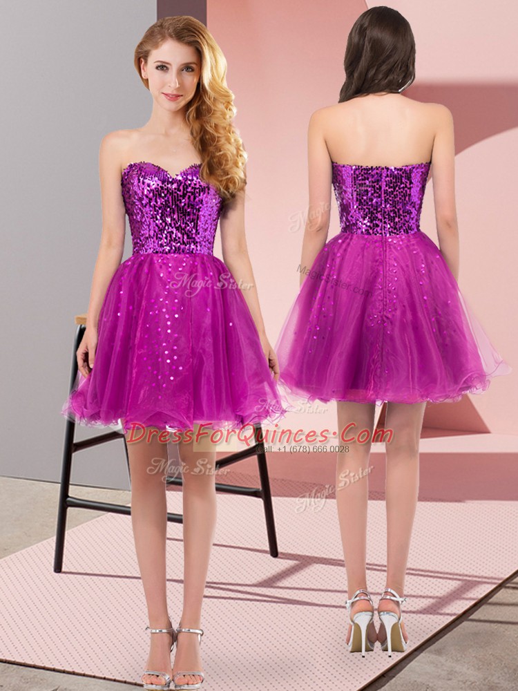 Sweetheart Sleeveless Zipper Prom Party Dress Fuchsia Tulle