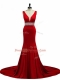 Wine Red Elastic Woven Satin Zipper Dress for Prom Sleeveless Brush Train Beading