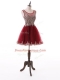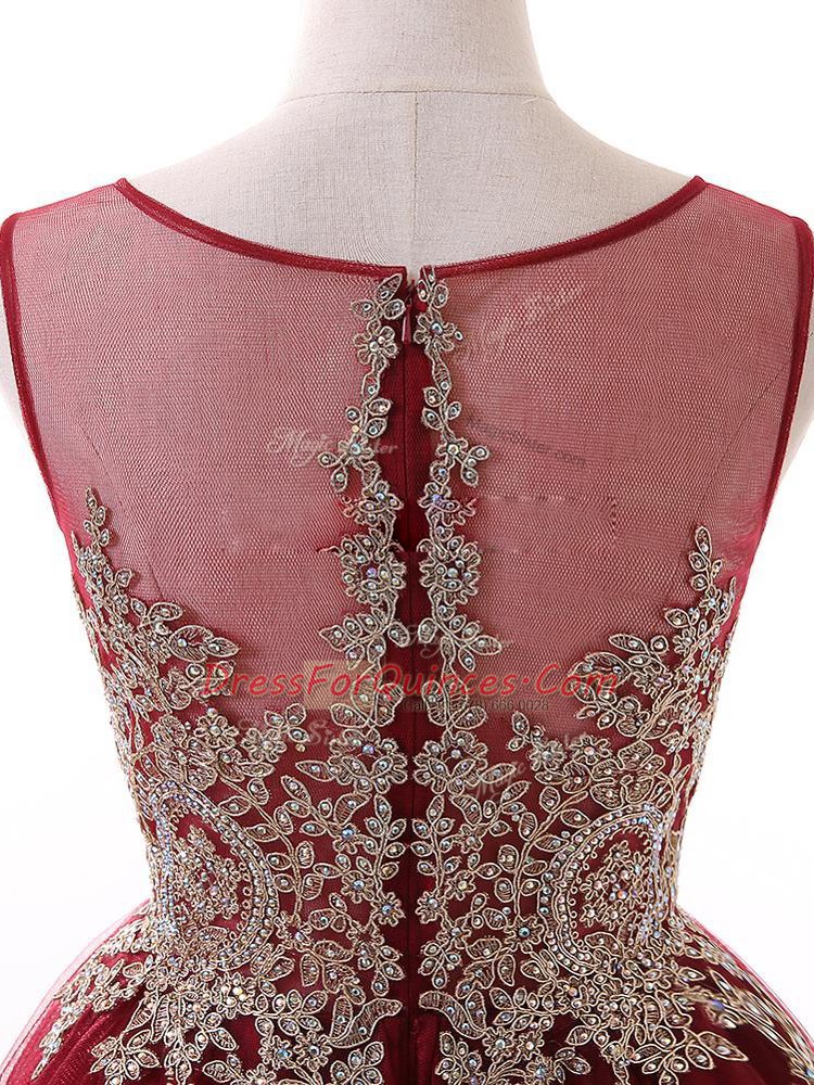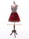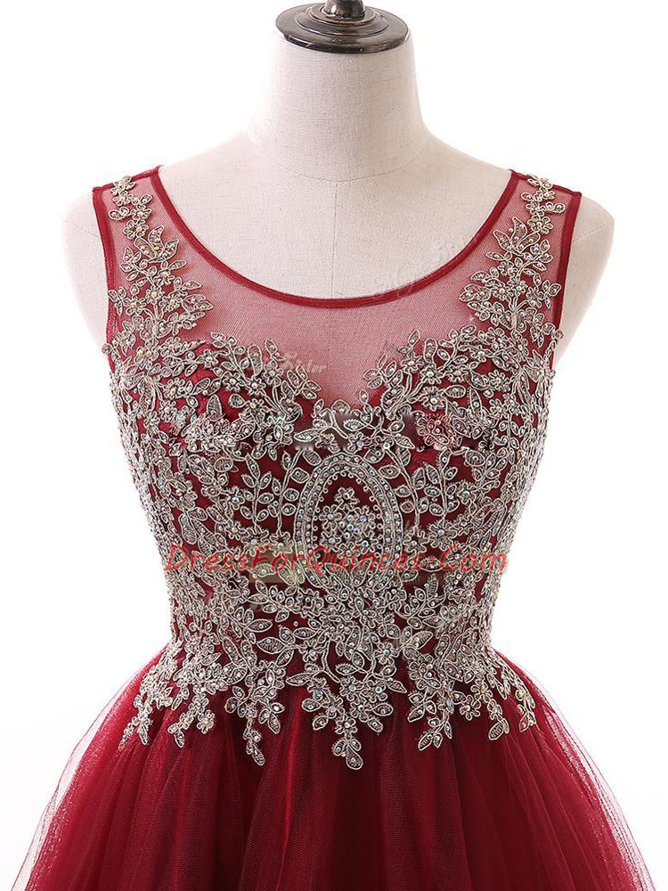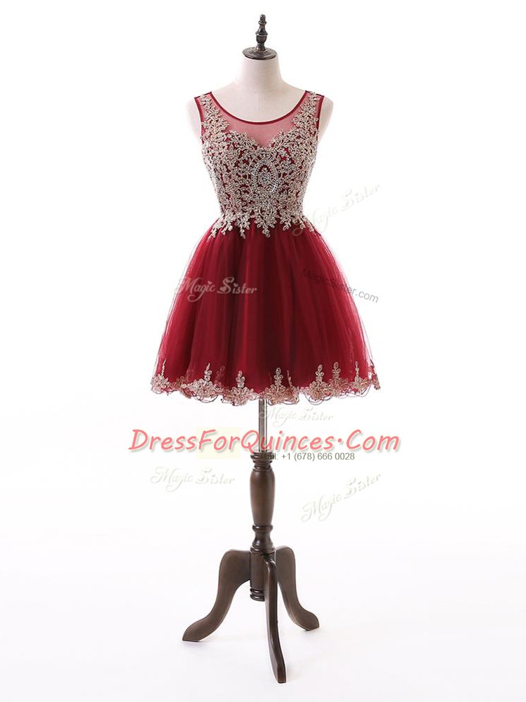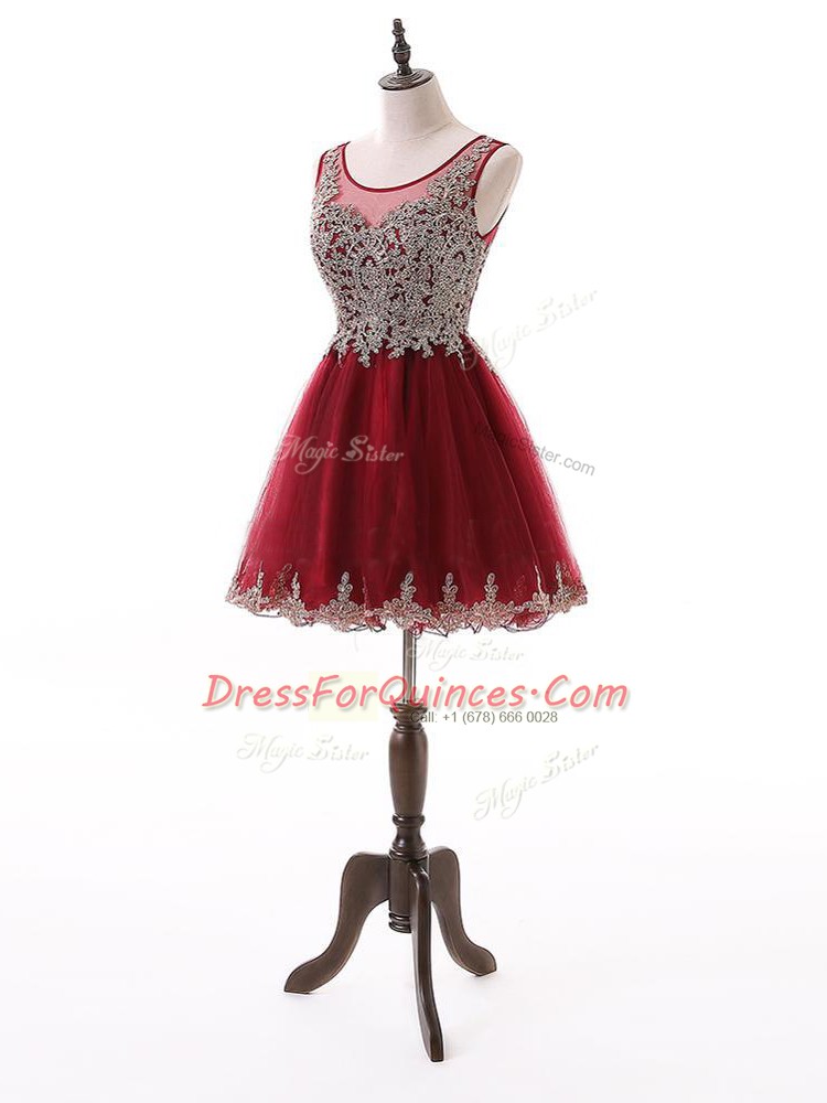 Wine Red Sleeveless Mini Length Beading and Lace and Appliques Zipper Prom Gown