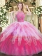 Adorable Multi-color Zipper Quinceanera Dress Beading and Ruffles Sleeveless Floor Length