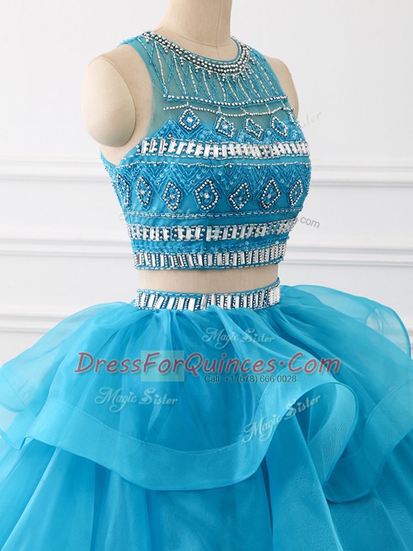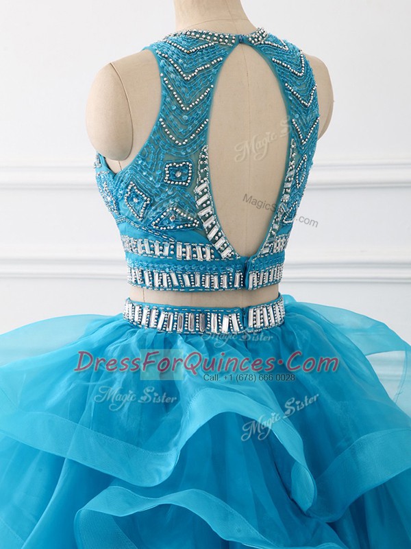 Adorable Tulle Sleeveless Quince Ball Gowns Brush Train and Beading and Ruffles