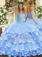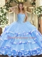 Aqua Blue 15 Quinceanera Dress Military Ball and Sweet 16 and Quinceanera with Beading and Ruffled Layers Sweetheart Sleeveless Lace Up