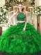 Artistic Floor Length Two Pieces Sleeveless Green Sweet 16 Dresses Zipper