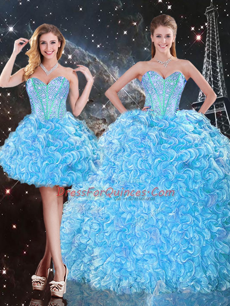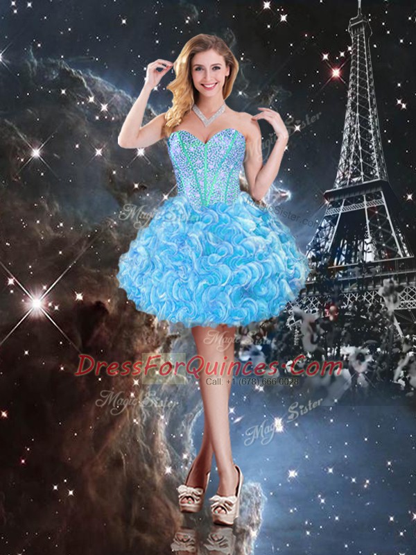 Baby Blue Sweetheart Lace Up Beading and Ruffles 15th Birthday Dress Sleeveless