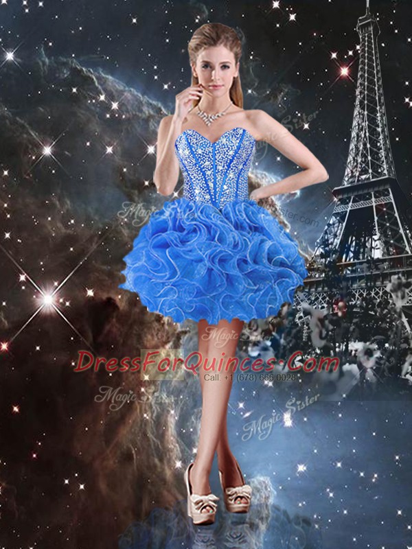 Baby Blue Sweetheart Lace Up Beading and Ruffles Ball Gown Prom Dress Sleeveless