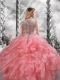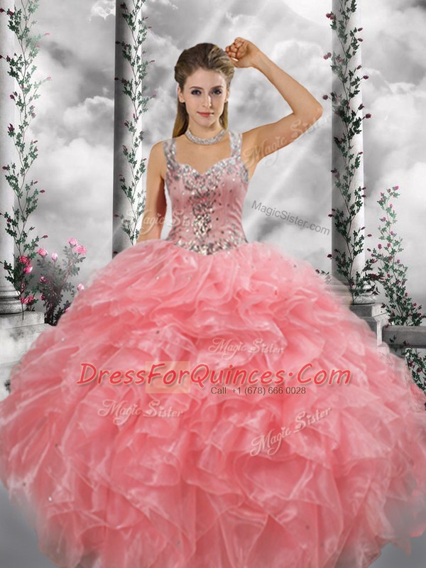 Beading and Ruffles Sweet 16 Dress Watermelon Red Zipper Sleeveless Floor Length