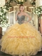 Comfortable Gold Sleeveless Floor Length Beading and Ruffles Lace Up Sweet 16 Quinceanera Dress