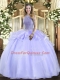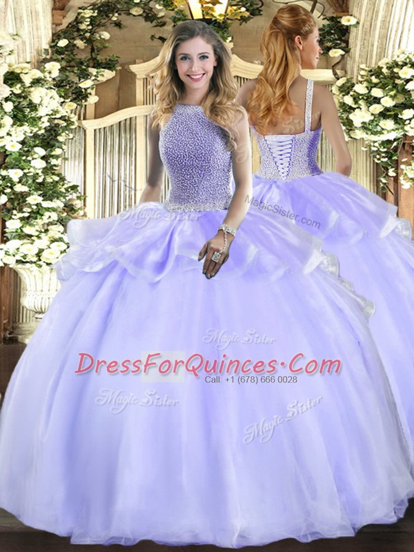 Customized Lavender Ball Gowns Square Sleeveless Organza Floor Length Lace Up Beading Sweet 16 Quinceanera Dress