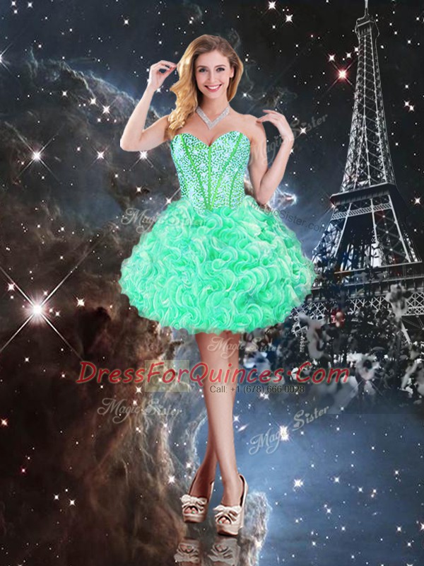Customized Organza Sweetheart Sleeveless Lace Up Beading and Ruffles 15 Quinceanera Dress in Apple Green
