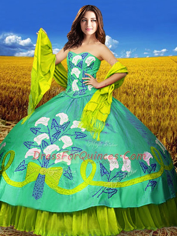 Decent Sleeveless Lace Up Floor Length Embroidery Ball Gown Prom Dress