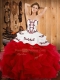 Decent White And Red Strapless Neckline Embroidery and Ruffles 15 Quinceanera Dress Sleeveless Lace Up