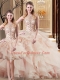 Dramatic Peach Quinceanera Dress Scoop Sleeveless Brush Train Lace Up