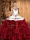Embroidery and Ruffles Ball Gown Prom Dress Wine Red Lace Up Sleeveless Floor Length