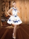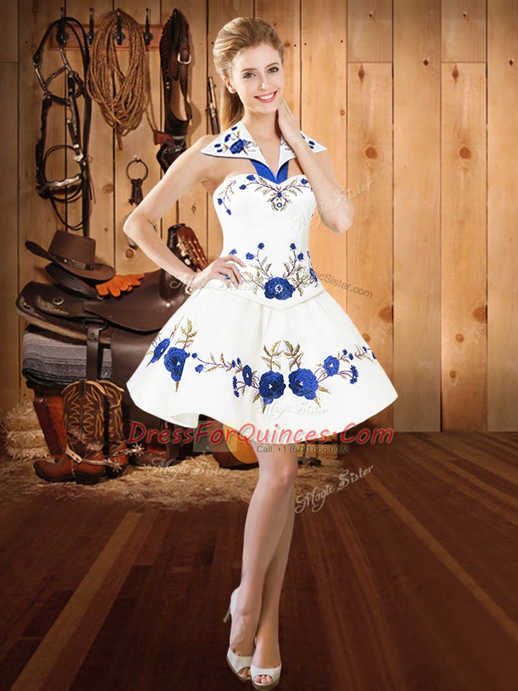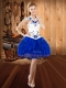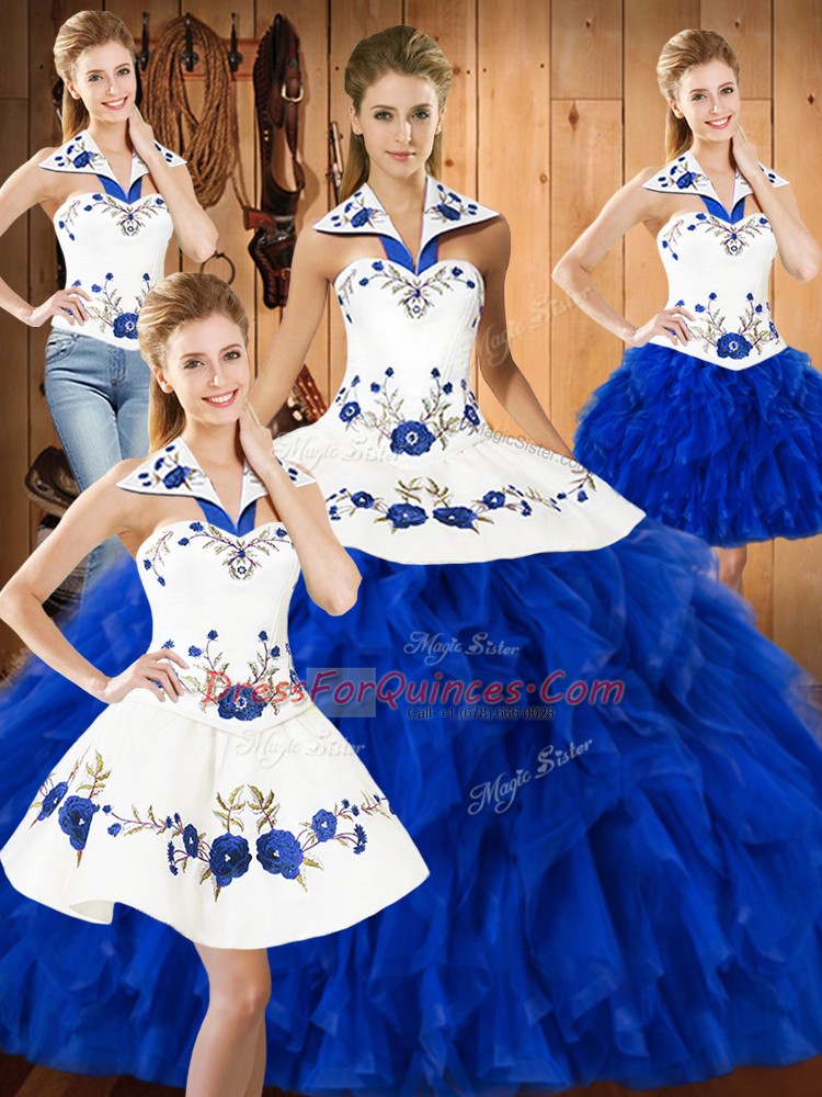 Exquisite Blue And White Sleeveless Embroidery and Ruffles Floor Length Ball Gown Prom Dress