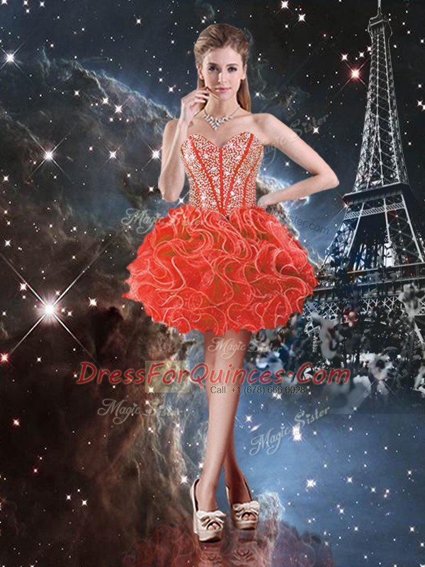 Extravagant Sweetheart Sleeveless Sweet 16 Dress Floor Length Beading and Ruffles Coral Red Organza