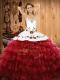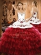 Eye-catching Floor Length Lace Up 15th Birthday Dress Wine Red for Military Ball and Sweet 16 and Quinceanera with Embroidery and Ruffled Layers