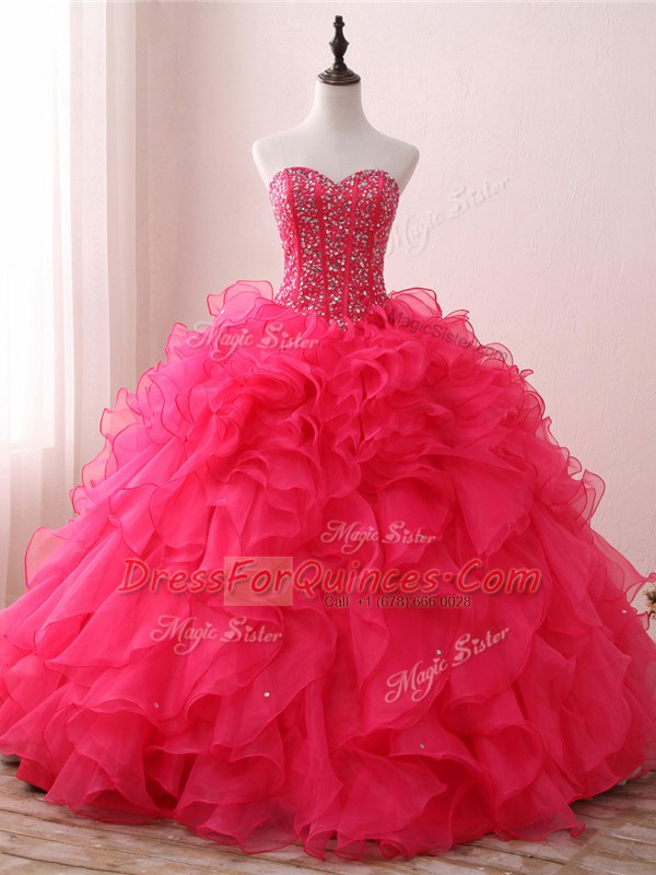 Floor Length Hot Pink Quinceanera Dresses Sweetheart Sleeveless Lace Up
