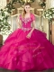 Floor Length Hot Pink Quinceanera Gown Tulle Sleeveless Beading and Ruffles