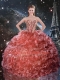 Floor Length Lace Up Sweet 16 Dresses Rust Red for Military Ball and Sweet 16 and Quinceanera with Beading and Ruffles