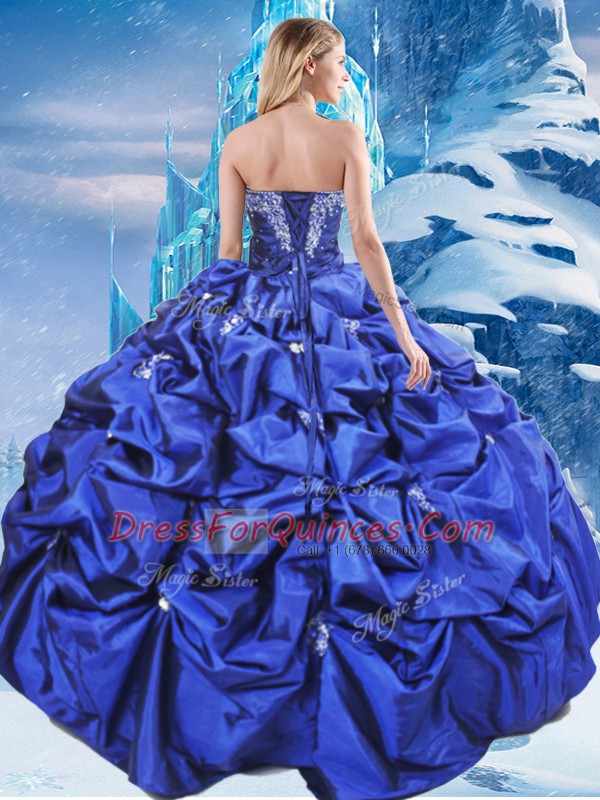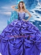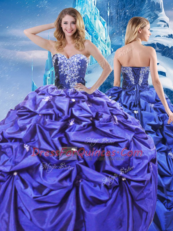 Floor Length Purple Ball Gown Prom Dress Taffeta Sleeveless Beading and Pick Ups