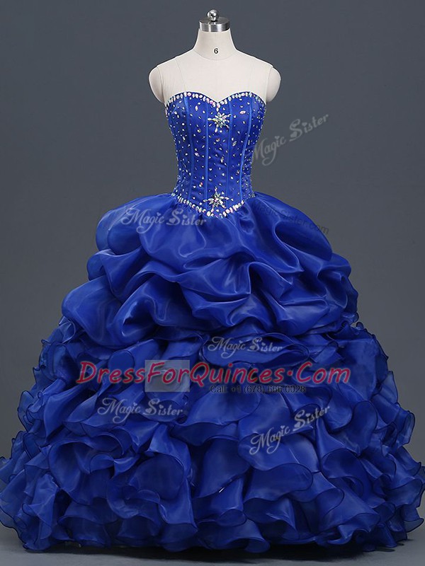 Floor Length Royal Blue Quince Ball Gowns Sweetheart Sleeveless Lace Up