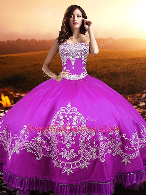 Fuchsia Sweetheart Neckline Beading and Appliques Quinceanera Gowns Sleeveless Lace Up