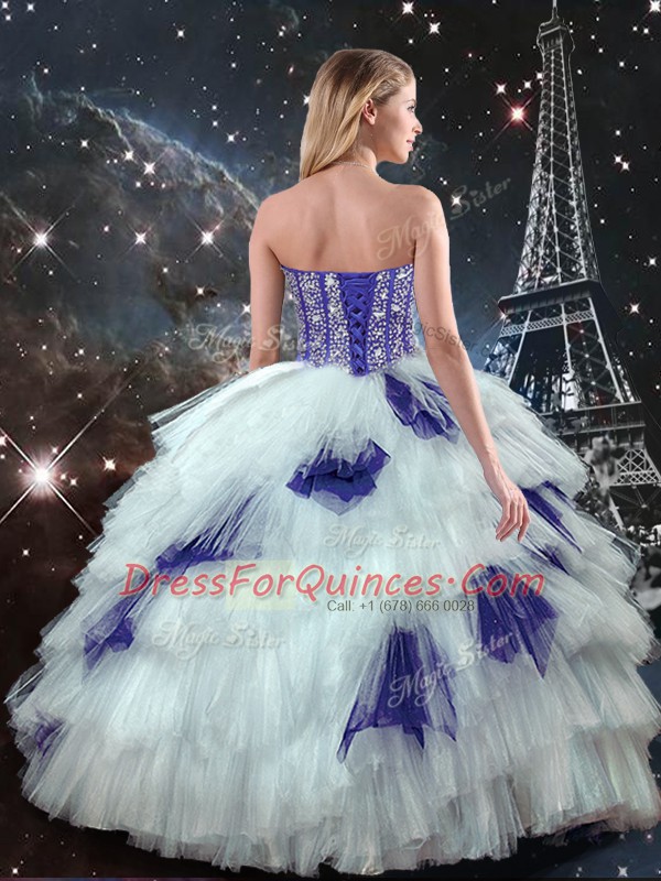 Gorgeous Sleeveless Tulle Floor Length Lace Up Quinceanera Gown in Multi-color with Beading and Ruffled Layers and Sequins