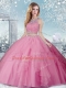 Graceful Rose Pink Scoop Neckline Beading 15 Quinceanera Dress Sleeveless Clasp Handle