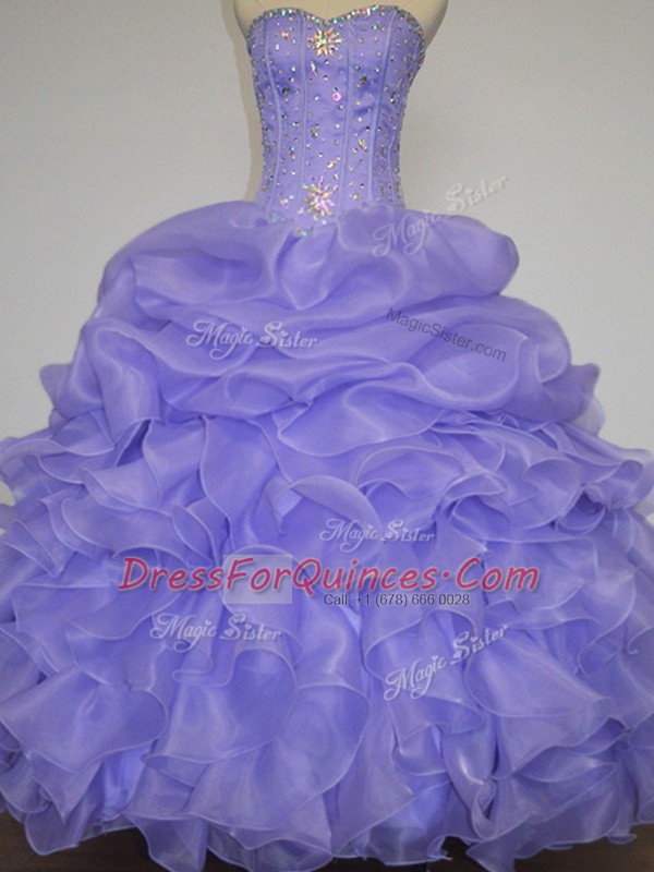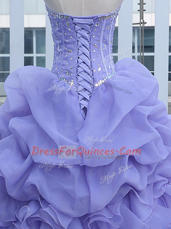 High Class Sleeveless Lace Up Floor Length Beading and Ruffles and Pick Ups Quinceanera Gown