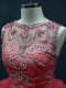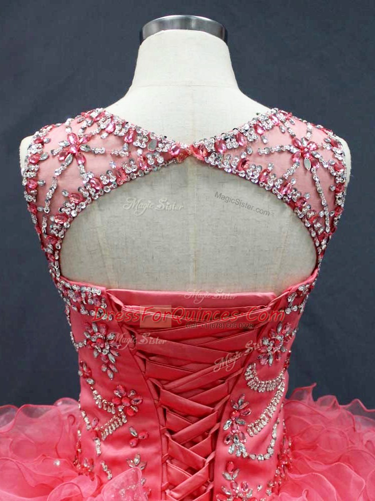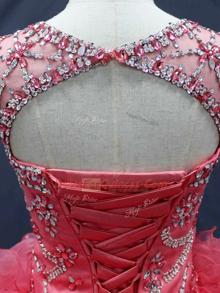 Ideal Scoop Sleeveless Lace Up Quinceanera Gown Coral Red Organza