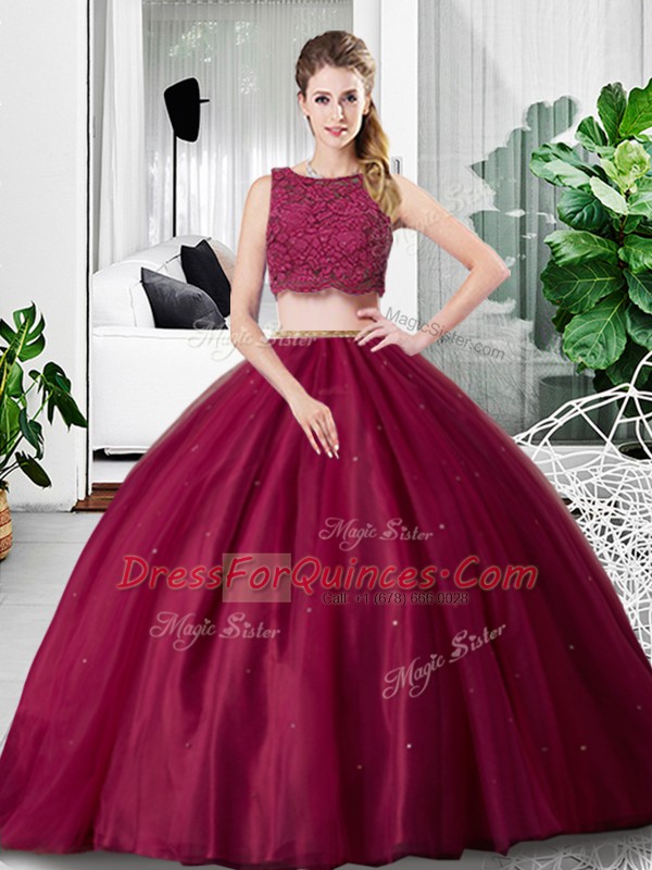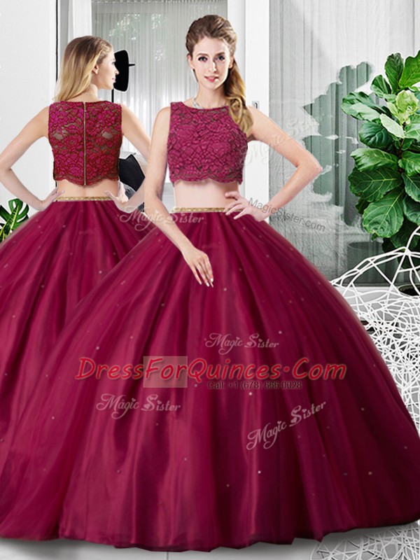 Low Price Fuchsia Zipper Scoop Lace and Ruching 15 Quinceanera Dress Tulle Sleeveless
