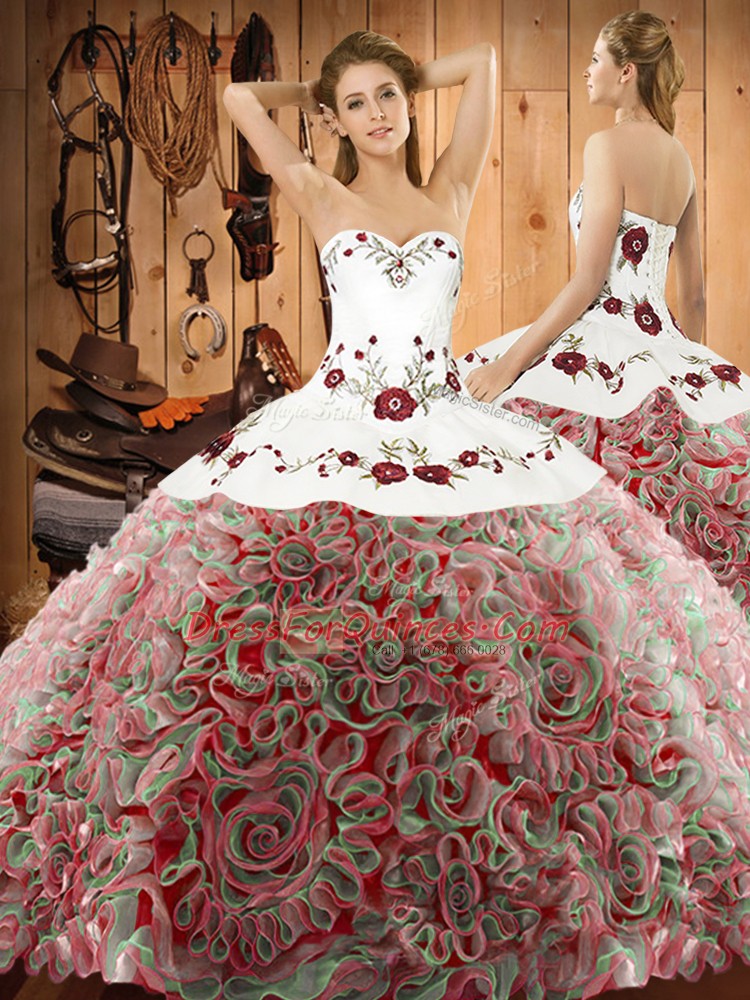 Multi-color Quinceanera Gowns Military Ball and Sweet 16 and Quinceanera with Embroidery Halter Top Sleeveless Sweep Train Lace Up
