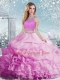 New Style Sleeveless Organza Floor Length Clasp Handle 15th Birthday Dress in Lilac with Beading and Ruffles and Pick Ups