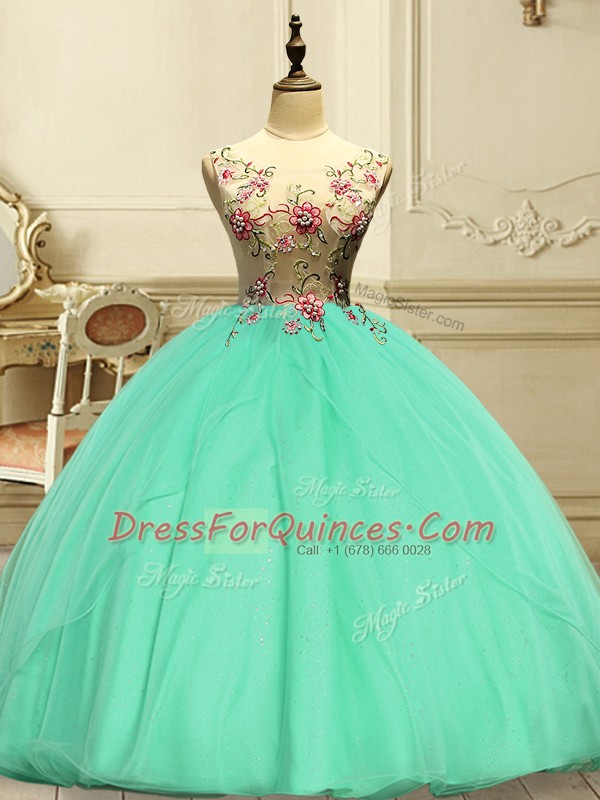 Nice Scoop Sleeveless Organza Quinceanera Gowns Appliques Lace Up